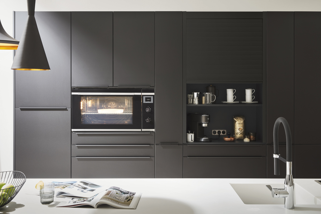 • Qualität vor Quantität: Langlebige Materialien wie Echtholzfurnier und Quarzstein amortisieren sich durch ihre hohe Widerstandsfähigkeit. Energieeffiziente Geräte sorgen für eine spürbare Reduzierung der Stromkosten. Hochwertige Beschläge mit integrierten Dämpfungs- und Leichtlaufsystemen erhöhen den Komfort im Küchenalltag.